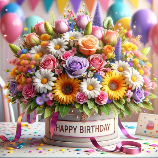 - Arreglos florales vibrantes y coloridos para un cumpleaños lleno de alegría